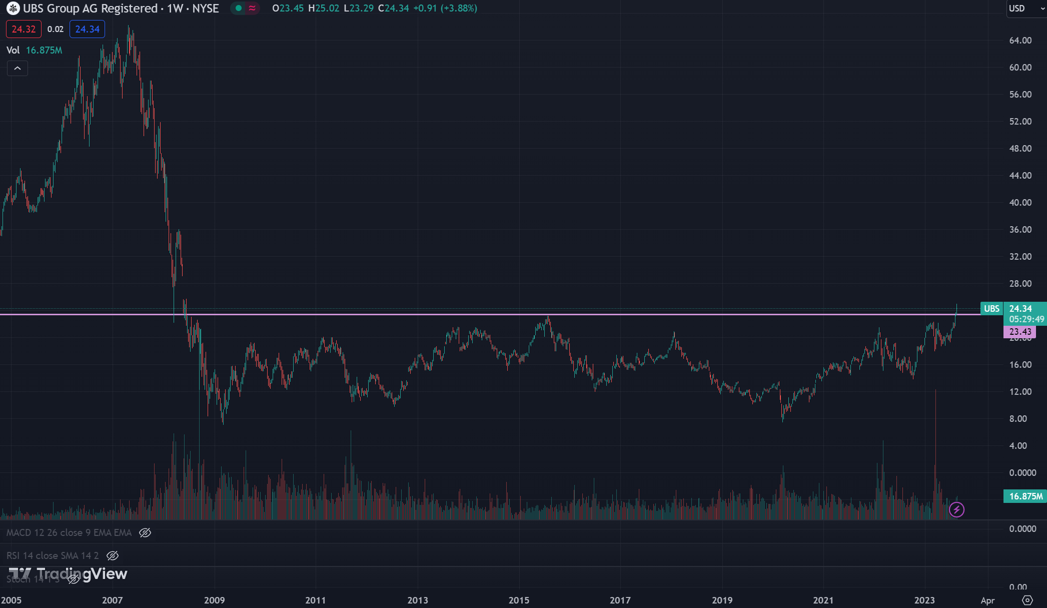 UBS stocks have rose 7.18% so far this August to $23.43, the highest since 2008. After acquiring Credit Suisse for $3.2bn, the forecast seems to be looking bright.