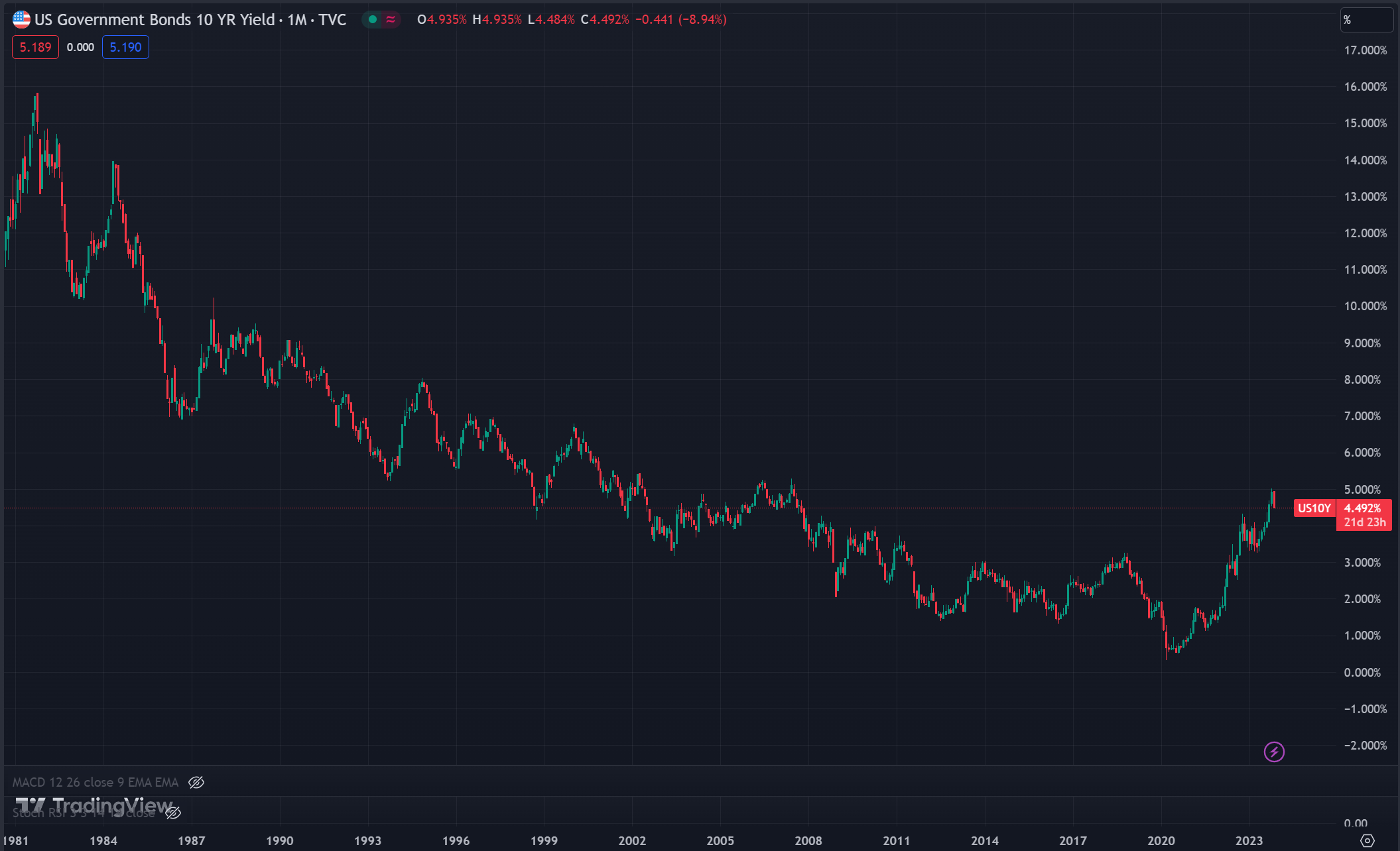 US 10 Year Treasury Yield since 1980 (Trading View)