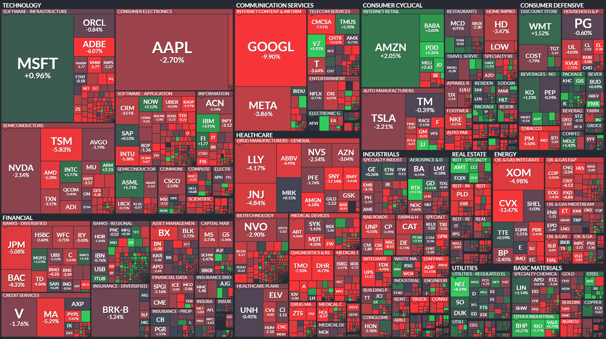 Goldman Sachs: results beat the estimates with earnings coming in at $5.47 a share, and revenue $11.82bn vs $11.19bn expected. Equities trading revenue grew 8% YoY whilst bond trading fell 6%. Profit fell 33% upon last year, mainly driven by Goldman Sachs pulling out of the consumer side of the business as well as selling their GreenSky business which had to be written off in this release.