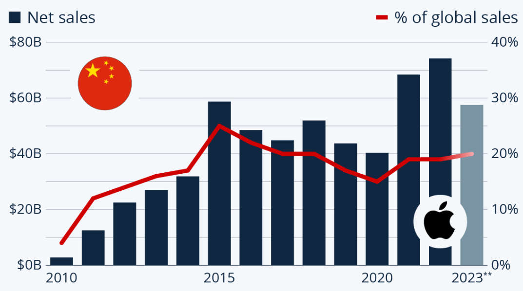 Apple's net sales in Greater China since FY 2010 (Statista)