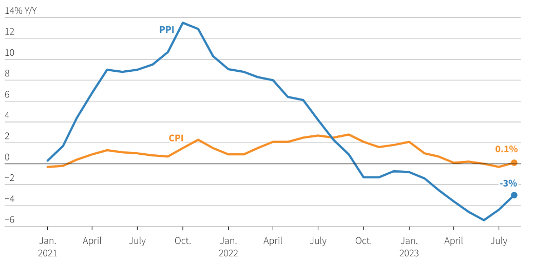 CPI YoY was in line with expectations for august at +0.1%, this is a positive indicator that deflation is easing after Julys data. PPI also came in at -3% YoY, a smaller decrease than the previous two months. Core inflation remained at 0.8% in August (MoM). Goldman Sachs said the CPI data was down to non-food inflation and rising crude oil prices. The key issue for China appears to be a mixture of a fragile domestic economy and a drop in exports due to high inflation in the West that is eroding consumption levels. Exports dropped 8.8% in August compared to 2022.